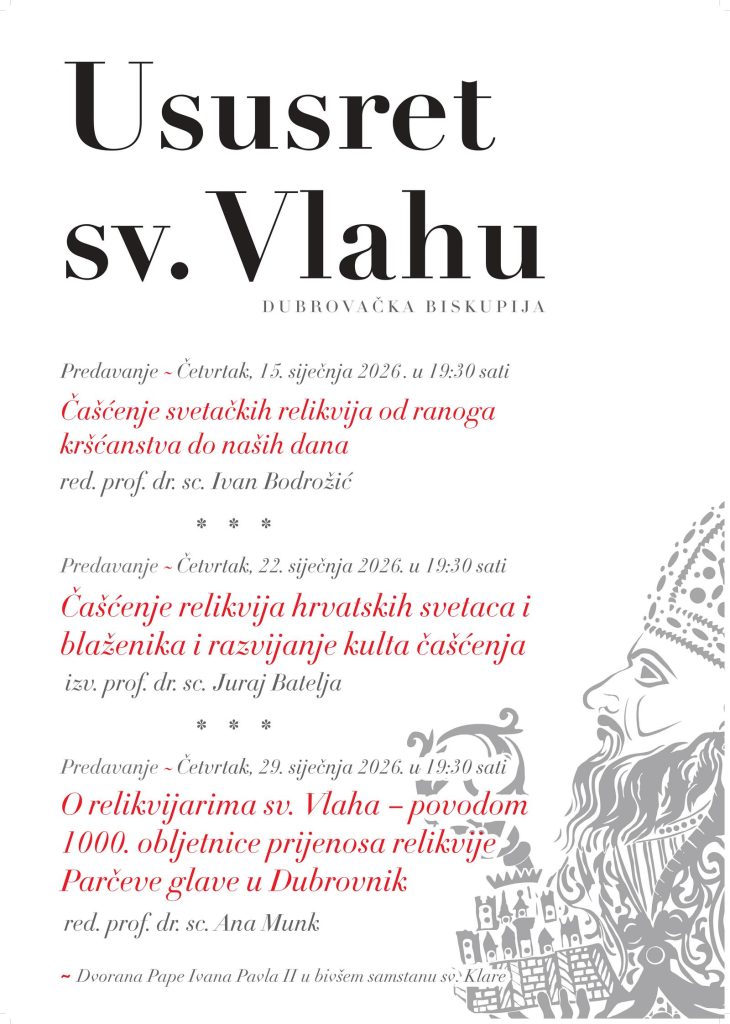 15.1. – Tribina ususret sv. Vlahu · Dvorana Ivana Pavla II., 19:30