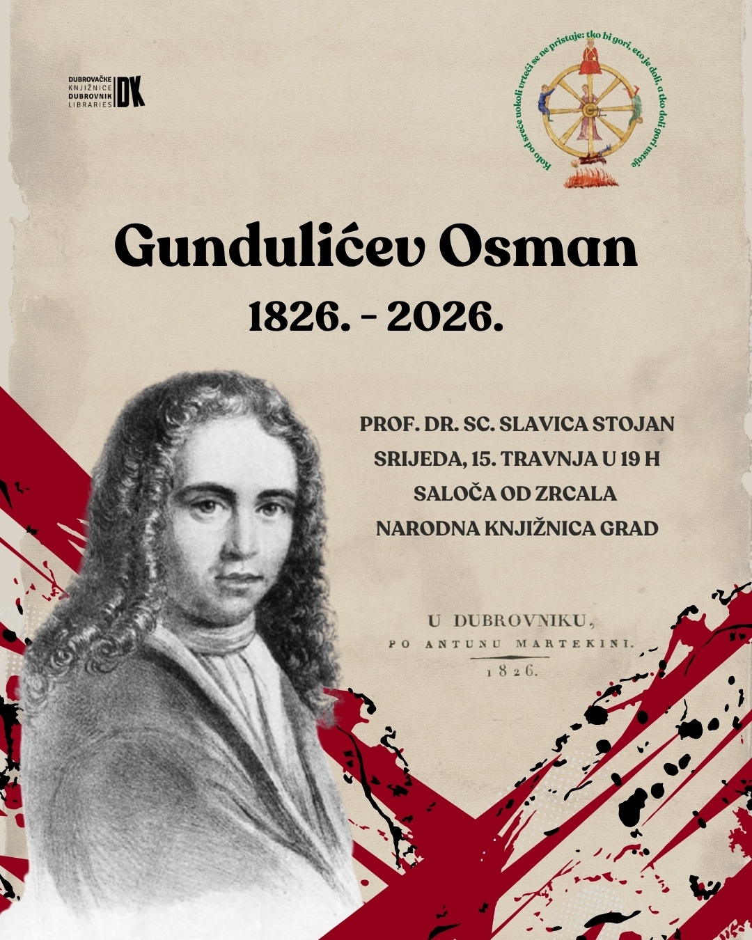 Tra 15 19:00 - 20:00 Narodna knjižnica: Predavanje Slavice Stojan o dvjestotoj obljetnici izdanja Gundulićeva Osmana Dubrovačke knjižnice Znanstvena knjižnica, Ul. Cvijete Zuzorić 4, DUBROVNIK Događanje Details Get Directions